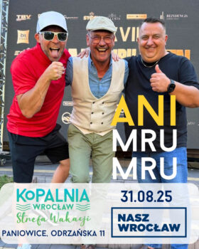 Bo tego dnia przygotowaliśmy coś specjalnego. Kabaret Ani Mru-Mru to goście, których nikomu nie trzeba przedstawiać. Ale ich obecność na Kopalni Wrocław Strefie Wakacji będzie wyjątkowa. Nie wystąpią na scenie w typowym kabaretowym stylu – ich energia przeniesie się na plażę, Beach Bary i… do kręcenie lodów.
